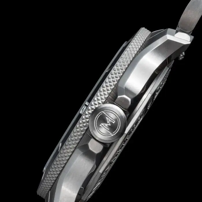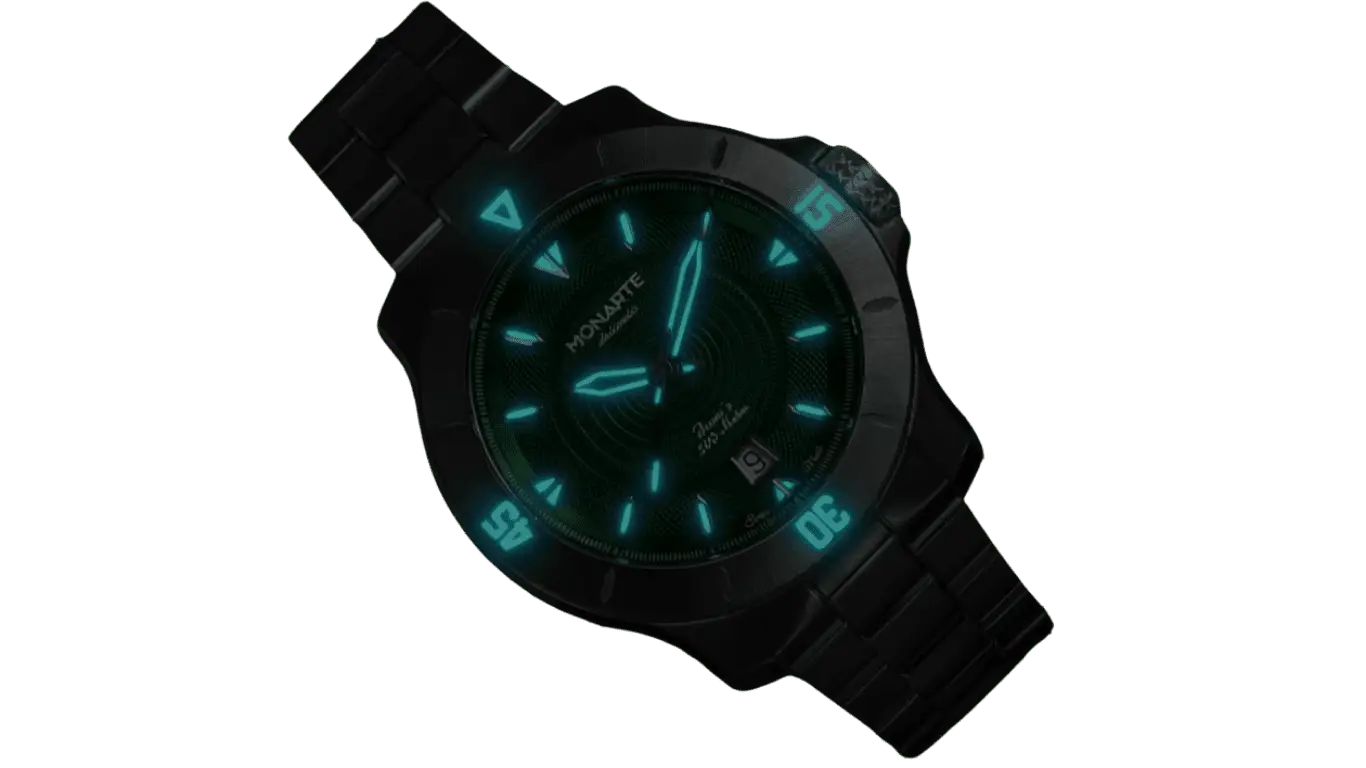 The sword-shaped hands, inspired by the squid, make time easy to read at a glance.